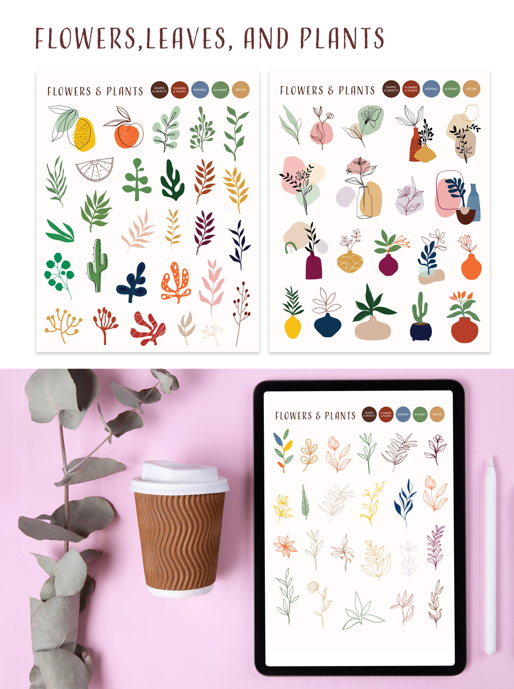 * Flower stickers, leaves, plants, potted plants stickers (92 elements)
