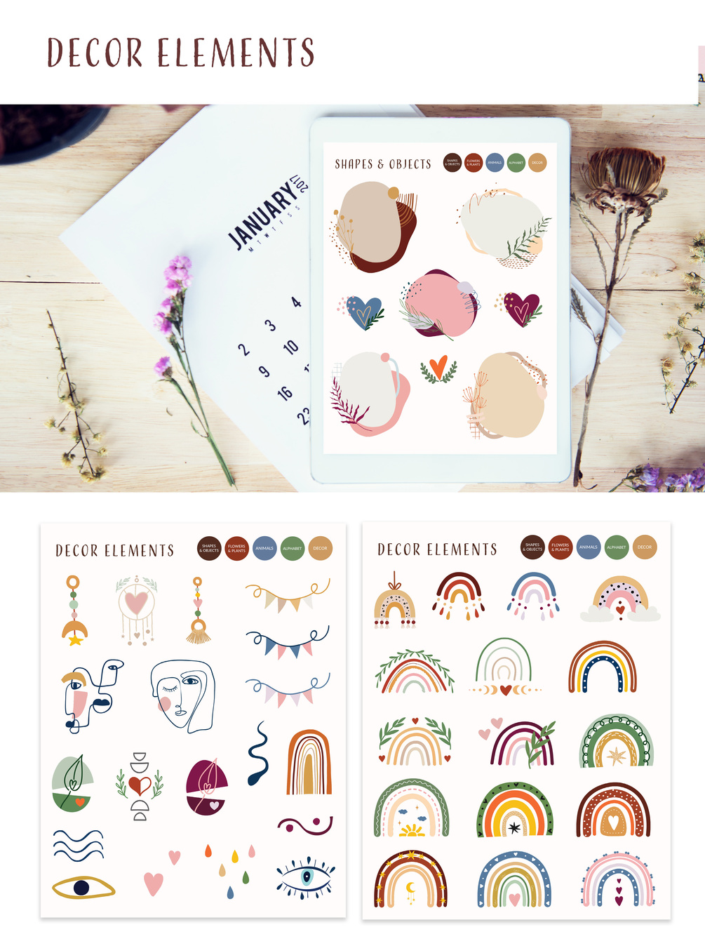 You'll get BOHO Digital Sticker Sheet for GoodNotes app (+ PNG files on transparent backgrounds)