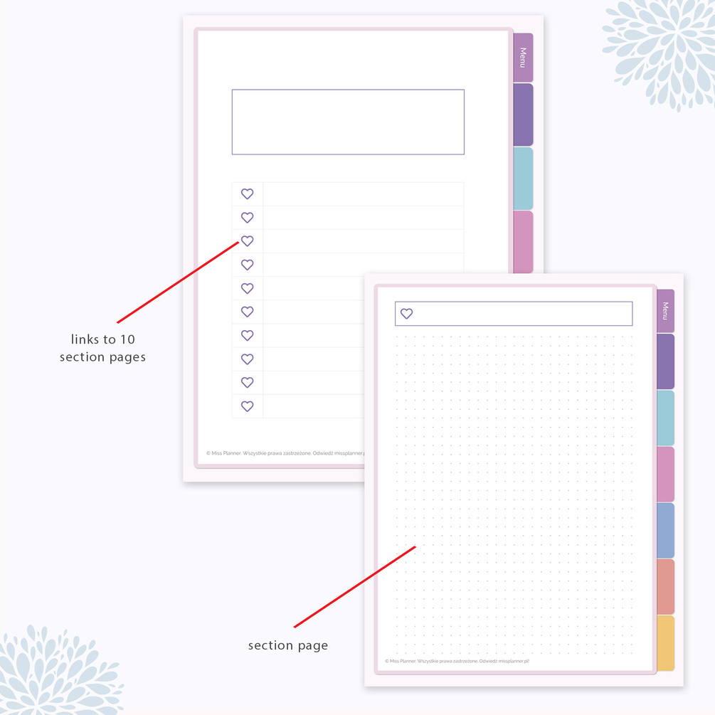 This planner contains hyperlinks that enable you to jump to any section you want. Perfect for iPads/Android Tablets in PDF annotation apps (GoodNotes, Notability, Xodo, Noteshelf, etc.)